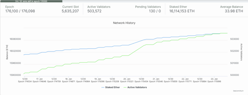 Además, es posible que se libere una gran cantidad de ETH en los meses posteriores a la actualización. Según el explorador Beacon Chain, 16,1 millones de ETH están actualmente bloqueados. Esta cantidad tiene un valor de 26,4 mil millones de dólares a precios actuales.