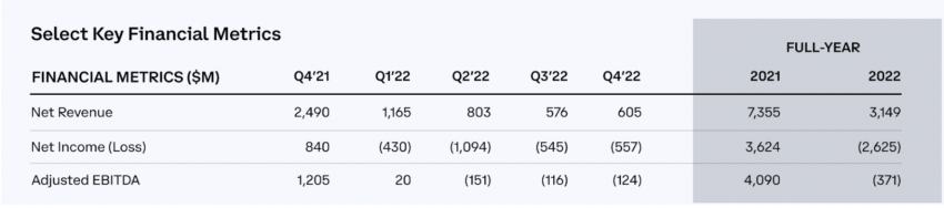 El bear market ha pasado factura a las finanzas de Coinbase. Según sus últimos resultados del cuarto trimestre y del año completo, la bolsa reportó una pérdida de 2,625 millones de dólares en 2022.