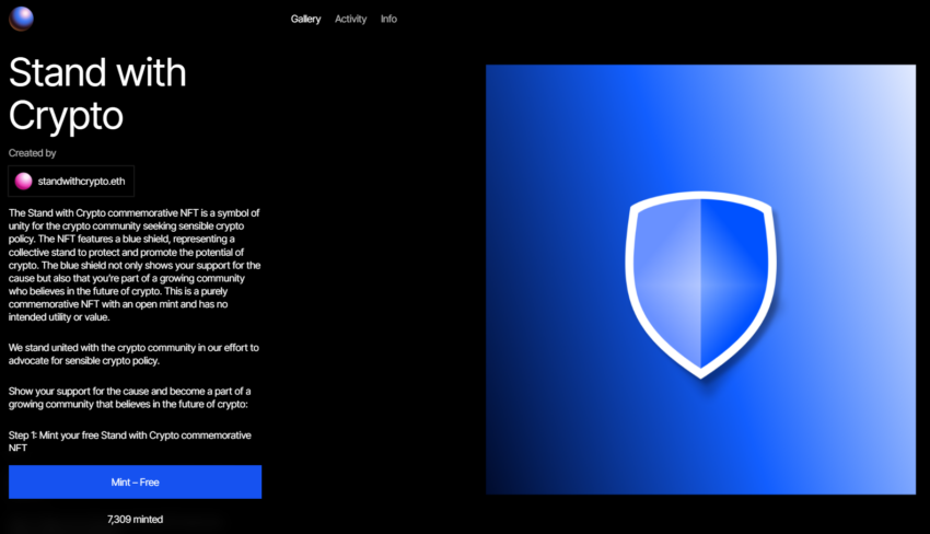 El 25 de abril, Armstrong acuñó el NFT “Stand With Crypto” en apoyo de los esfuerzos en curso para lograr claridad regulatoria.