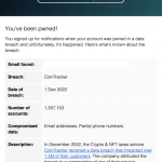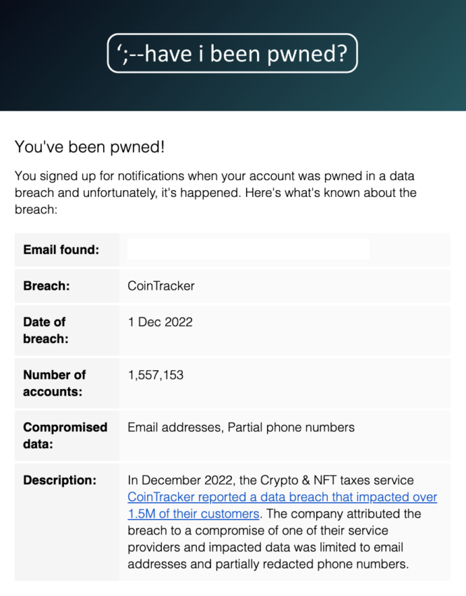 Pocos días después, el popular servicio de alerta de filtraciones de datos, haveibeenpwned, confirmaba la filtración de su base de datos. Según la data recopilada esto afectó a 1,5 millones de usuarios del rastreador de criptomonedas. Adicionalmente, algunos teléfonos fueron también filtrados, aunque esto no fue el caso de todos los usuarios.