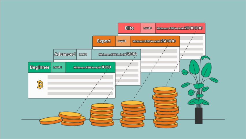 Pero, el factor principal que determina las tasas de interés es el nivel de su cuenta, que se basa en la cantidad de RBIS que posee. Necesita un mínimo de 1,000 RBIS para subirse al tren y alcanzar el estado de cuenta de nivel Principiante, lo que lo hace elegible para ganar intereses sobre su capital. Cuanto más RBIS compre, mayor será el nivel de su cuenta y mayor será la tasa de interés que gane en su Bitcoin, Ethereum, euro, dólares estadounidenses u otra moneda admitida.