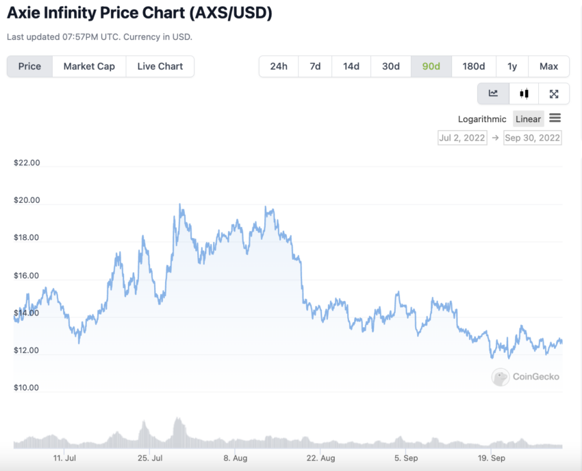 Hoy, Axie Infinity (AXS) ha bajado 92,3% desde su punto máximo a alrededor de 12 dólares por acción, pero el juego y su empresa matriz, Sky Mavis, continúan luchando.
