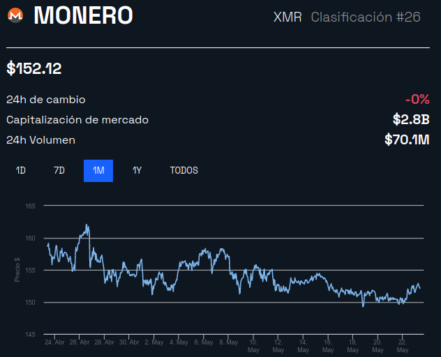 XMR/USD – 1 mes. Fuente: BeInCrypto