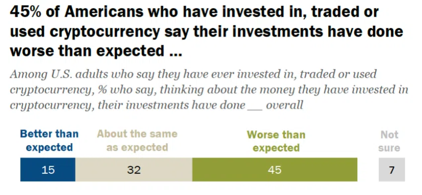 Varios escenarios han paralizado la moral de los inversores con respecto a las actividades relacionadas con las criptomonedas. Un estudio del Pew Research Center compartido con BeInCrypto destacó una dimensión del problema.