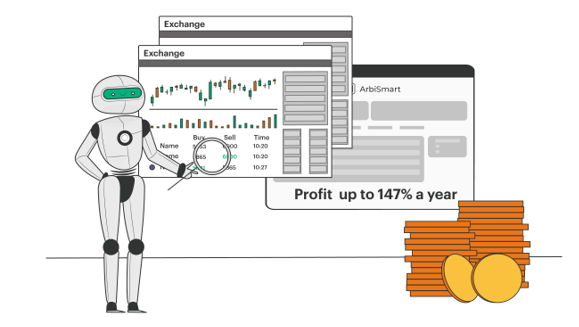 En primer lugar, ArbiSmart ofrece arbitraje automatizado de criptomonedas. Esta es una estrategia de inversión de bajo riesgo que genera dinero a partir de las diferencias temporales en el precio de un activo criptográfico en los intercambios. Estas disparidades de precios ocurren con la misma regularidad, independientemente de la dirección en la que se mueva el mercado.