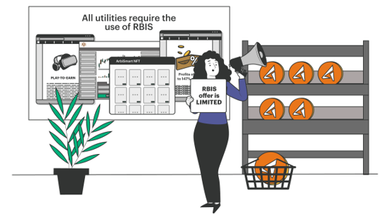 Dado que todas las empresas de servicios públicos del ecosistema ArbiSmart requieren el uso de RBIS, con la incorporación de cada nuevo servicio, la demanda de tokens aumentará. La oferta está restringida para siempre, con un tope de 450 millones de RBIS, por lo que a medida que aumenta la demanda, la oferta se reducirá, elevando el precio y generando enormes ganancias de capital.