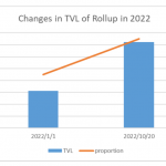 El bear market ha visto el lanzamiento de varios nuevos proyectos DeFi L2, una tendencia que parece continuar en 2023. El valor total bloqueado en aplicaciones descentralizadas aumentó un 131% entre enero y octubre de 2022 hasta el 7.5% del valor total bloqueado en Ethereum.