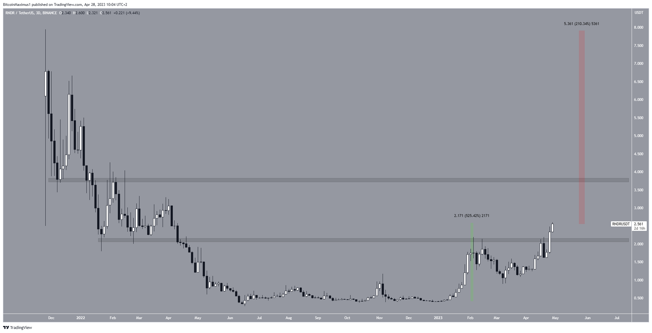 El precio de RNDR ha sido uno de los mayores ganadores desde principios de 2023, aumentando en un 500% en el proceso.