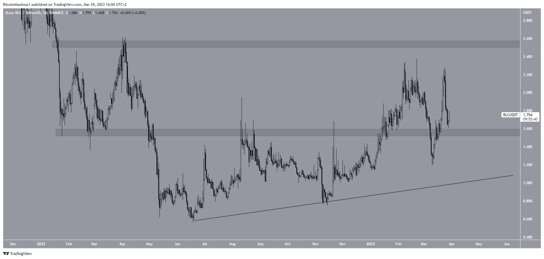 El precio del RLC se desvió por debajo del área horizontal de 1.55 dólares el 10 de marzo (círculo verde), pero lo recuperó poco después. Este es un signo alcista que a menudo precede a los movimientos alcistas. Si continúa el aumento actual, el precio de RLC podría moverse al área de resistencia de 2.55 dólares.