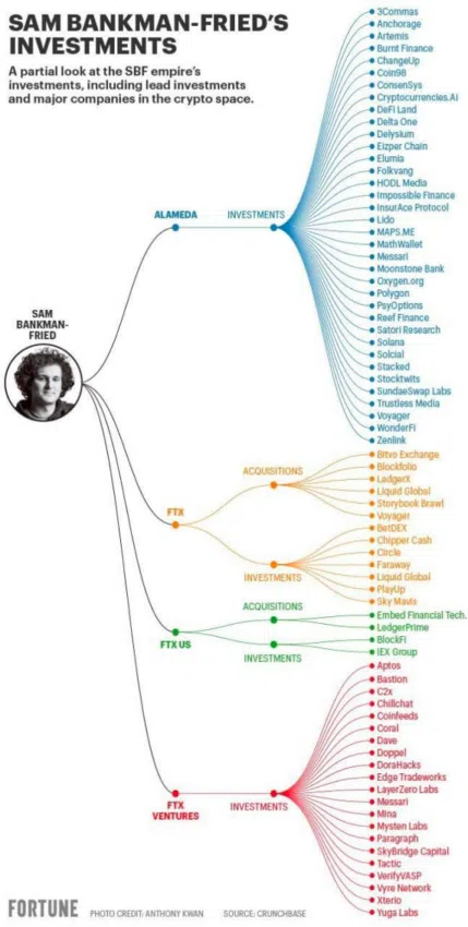 Dicho ejecutivo recaudó con éxito miles de millones para financiar el grupo FTX. Pero ¿qué pasa con las empresas del mismo grupo? Uno debe saber que el alcance de SBF en el criptoverso fue mucho más allá de FTX, Alameda y FTX.US.