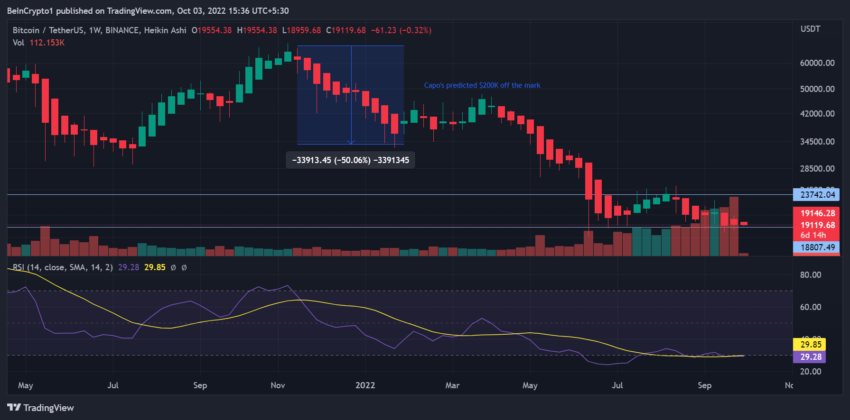 Una comparación interesante muestra cómo el análisis inferior de Il Capo Of Crypto fue seguido por mayores pérdidas. En particular, la mayor parte de la predicción de Il Capo sobre el precio de BTC fue negada por la acción del precio real.