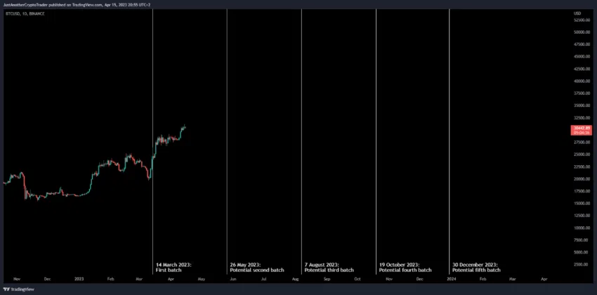 Un analista y escritor frecuente de CryptoQuant proporcionó las fechas exactas para la venta de las cuatro porciones restantes:
