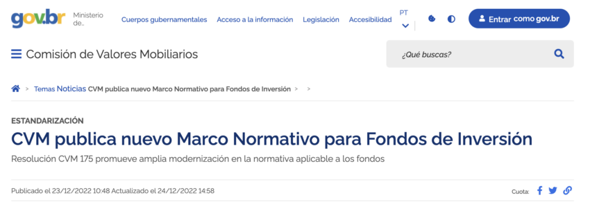 La Comissão de Valores Mobiliáros (CVM) emitió la resolución 175, que creó un nuevo marco regulatorio para los Fondos de Inversión, a fines de diciembre de 2022.