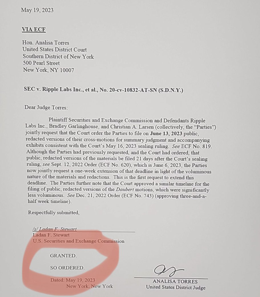 En un desarrollo separado, la jueza Analisa Torres concedió la solicitud de SEC y Ripple de extender su presentación del discurso de Hinman y otros documentos relacionados por una semana.