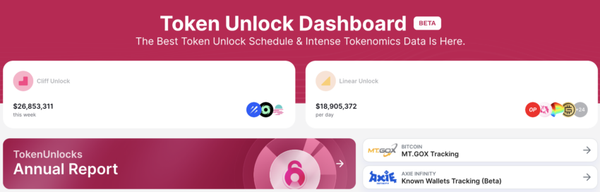 Otros proyectos que se espera que desbloqueen nuevos tokens incluyen 1 pulgada, Moonbeam GLMR, Tornado Cash TORN, ApeCoin APE y otros.