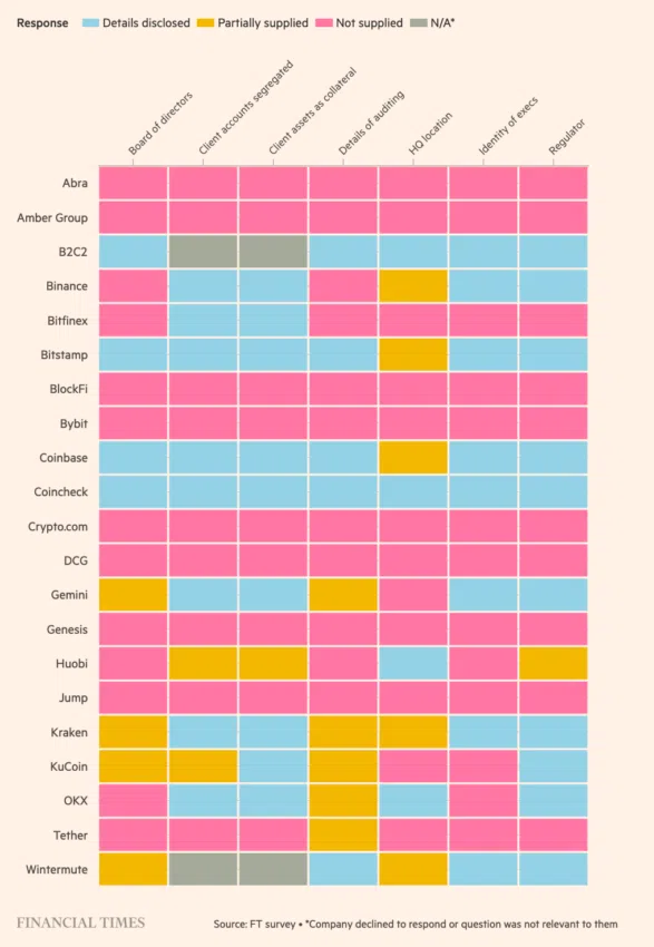 Según un informe del Financial Times, algunos de los abanderados de la industria de las criptomonedas se están negando a aclarar sus prácticas comerciales. El informe pretende cuestionar 21 empresas de Web 3.0.