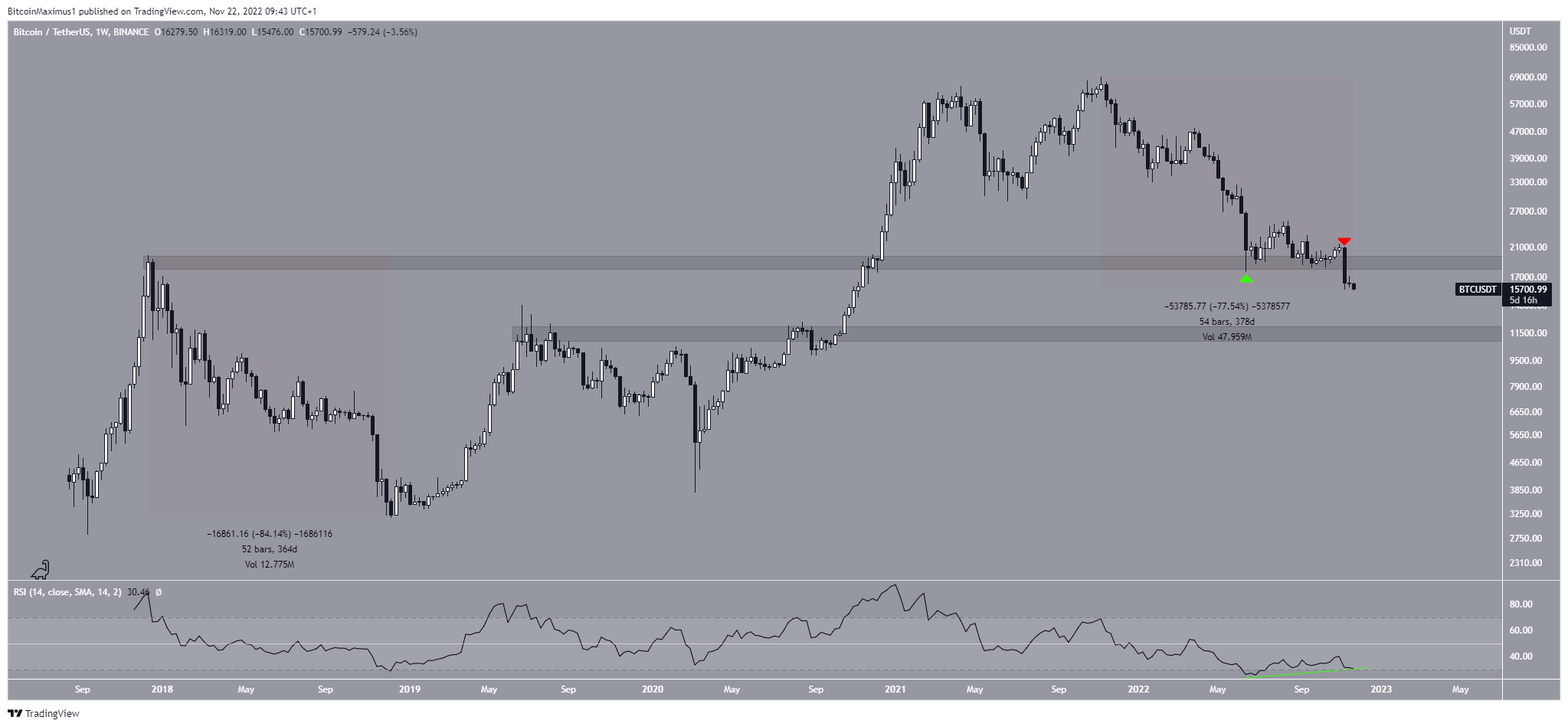 Por lo tanto, reclamar el área de 19,000 dólares significaría que el fondo habría llegado. Esto también crearía y validaría una divergencia alcista (línea verde) para el RSI semanal. Por lo tanto, haría que la futura predicción del precio de Bitcoin fuera alcista.