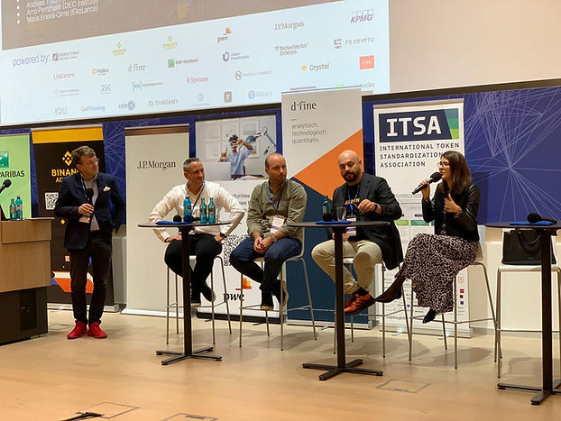 Por último, estuvimos presentes en la Conferencia Crypto Assets en Frankfurt. Maria Eneva-Olms, CEO de EkoLance, fue una de las panelistas.