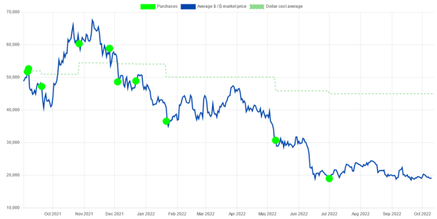 Según datos recopilados de las compras de Bitcoin anunciadas por el estado centroamericano, el portafolio de Bitcoin del El Salvador se ha reducido más de un 50%. Es de costumbre que Bukele anuncie mediante Twitter que cantidad de BTC ha comprado el país como también el rango del precio al que se compró en dólares estadounidenses.