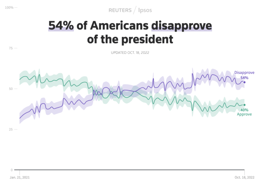 Parte del problema para los demócratas es que el presidente Joe Biden no es especialmente popular. La calificación actual de Biden es del 40%, lo que es un problema para el partido en general, ya que busca aferrarse al poder.