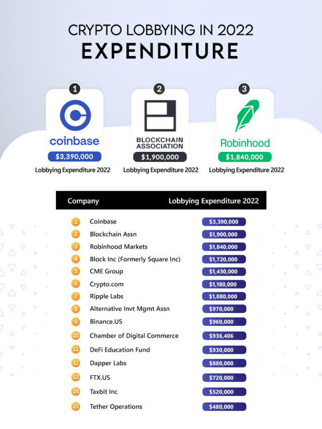 Muchas empresas, incluidas las de la industria cripto, presionan para tratar de dar forma a las regulaciones y leyes a su favor. Según el informe de BeInCrypto del año pasado, el gasto en cabildeo por las criptomonedas se ha más que cuadruplicado en los últimos cuatro años.