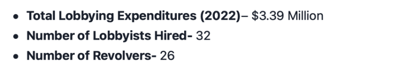 Las empresas han sido defensores de las campañas de cabildeo durante mucho tiempo y han gastado más en el cabildeo en general. En los últimos seis años, los gastos de cabildeo aumentaron de 2,50 millones de dólares en 2017 a 25,57 millones de dólares en 2022. Esto representa un aumento masivo del 922%, como se muestra en el siguiente gráfico.