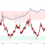 Históricamente, podemos analizar que tras alcanzar los colores azules, o zona inferior, el precio suele girar al alza e inicia un nuevo movimiento ascendente. Opino que o ya o pronto, volverá a pasar lo mismo, una vez más, que subirá.