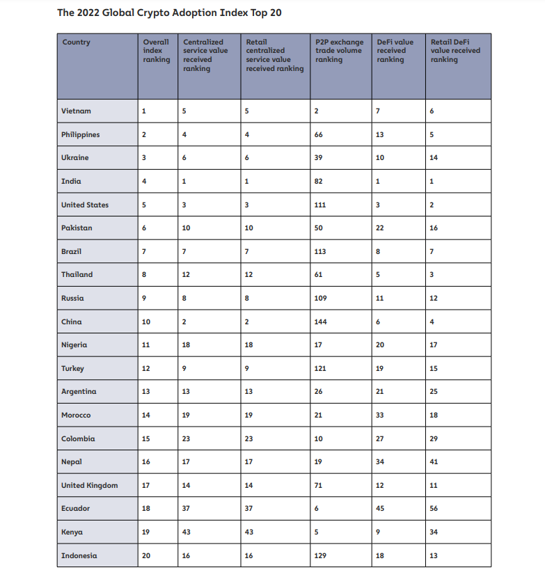 Sea como sea, la adopción sigue su curso, como se observa en la tabla anterior y no parará. En esta tabla podemos observar, por países, cuales están más pro cripto, cómo ranking general y en función de los servicios que ya se ofrecen, para la tecnología blockchain, ya sea servicios CEX (centralizados cripto, casas de intercambio) como DEX (descentralizados cripto, casas de intercambio) y DeFi (Finanzas peer to peer, entre personas sin intermediario vía cripto y otras finanzas descentralizadas bajo la blockchain).