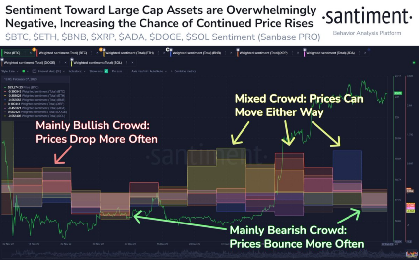 A pesar del escepticismo predominante entre los traders, algunos expertos creen que esta perspectiva en realidad mejora la probabilidad de que los precios sigan subiendo. Según la firma de análisis de datos on-chain Santiment, los precios en el mercado cripto tienden a moverse en la dirección que la mayoría de los traders consideran menos probable.