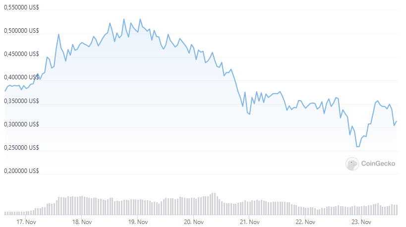 Al momento de la publicación, $SNFT cotizaba en 0.31 dólares, según los datos de CoinGecko. Esta cifra representa una caída de casi el 7% en las últimas 24 horas y del 11% en los últimos 7 días.