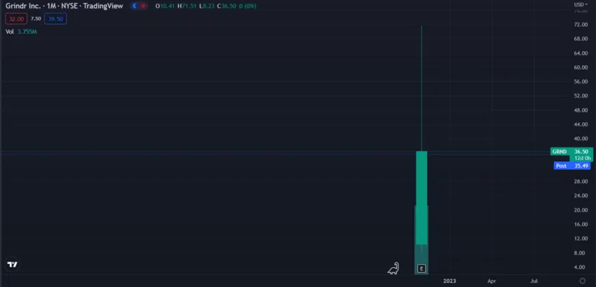 El precio de las acciones de Grindr terminó el día de negociación el 17 de noviembre de 2022 a 11.63 dólares y abrió el día de trading el 18 de noviembre de 2022 a 17.00 dólares, un 46.2% más durante la noche.