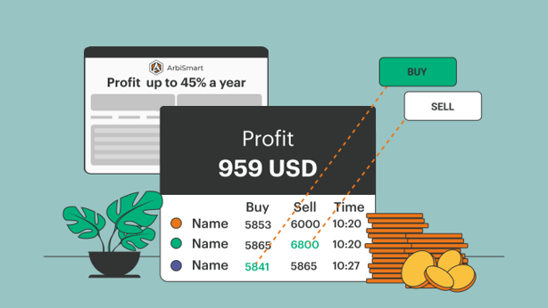El algoritmo de ArbiSmart monitorea los activos en casi 40 exchanges a la vez, y cada vez que encuentra una diferencia de precio temporal, compra automáticamente al precio más bajo disponible antes de vender instantáneamente al precio más alto disponible para obtener rendimientos de hasta el 45% al año, según el monto depositado.