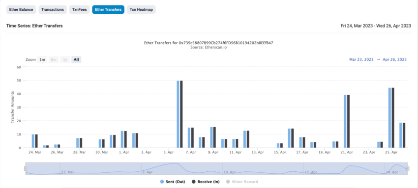El monedero 0x739c actualmente tiene solo 1.79 dólares en tokens Ethereum (ETH). Curiosamente, el saldo más alto de esta cuenta fue de solo 2.05 dólares, registrado el viernes pasado.