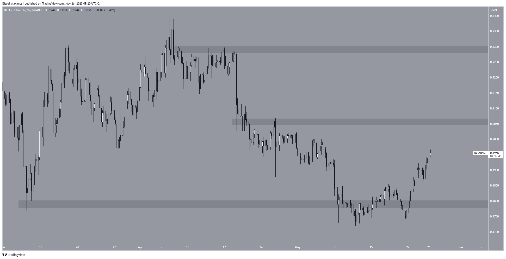 El precio de IOTA ha aumentado desde el 22 de mayo. El mismo día, recuperó el área horizontal de 0.18 dólares, que ahora se espera que brinde soporte.