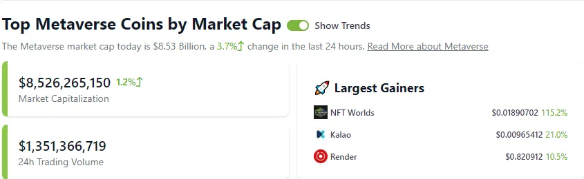 Según CoinGecko, la capitalización de mercado del token Metaverse es actualmente de alrededor de 8,5 mil millones de dólares. Esto es menos del 1% de la capitalización total del mercado cripto, que ahora es de casi 1,1 billones de dólares.