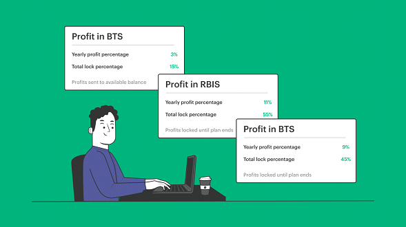 La forma en que se recibe el interés también se puede personalizar. Pagado diariamente, se puede transferir automáticamente a un saldo separado del que se puede retirar en cualquier momento. Alternativamente, para un mejor rendimiento, se puede agregar al saldo bloqueado junto con los ahorros en los que se está ganando.