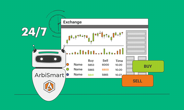 ArbiSmart puede generar rendimientos tan altos para los holders de monederos porque utiliza fondos depositados para realizar arbitraje de criptomonedas automatizado, un enfoque de inversión sin riesgos que genera dinero a partir de las ineficiencias de los precios. Estas son ventanas breves en las que un criptoactivo estará disponible en todos los exchanges, a diferentes precios simultáneamente.