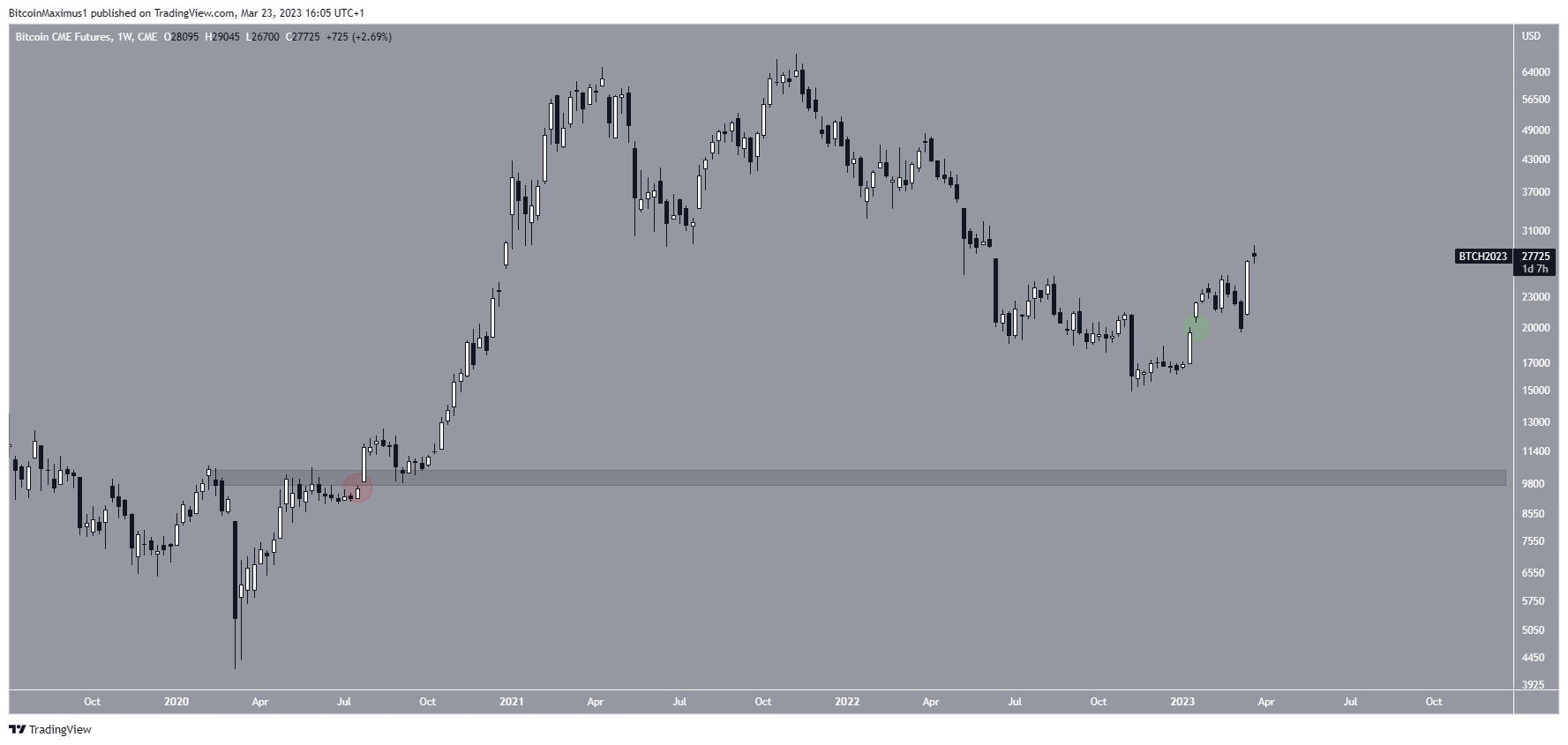 Sin embargo, vale la pena mencionar que la caída del 6 al 13 de marzo llenó la brecha de CME más reciente (círculo verde). La brecha en el tweet es una brecha muy pequeña (círculo rojo) que ha estado allí desde septiembre de 2021.