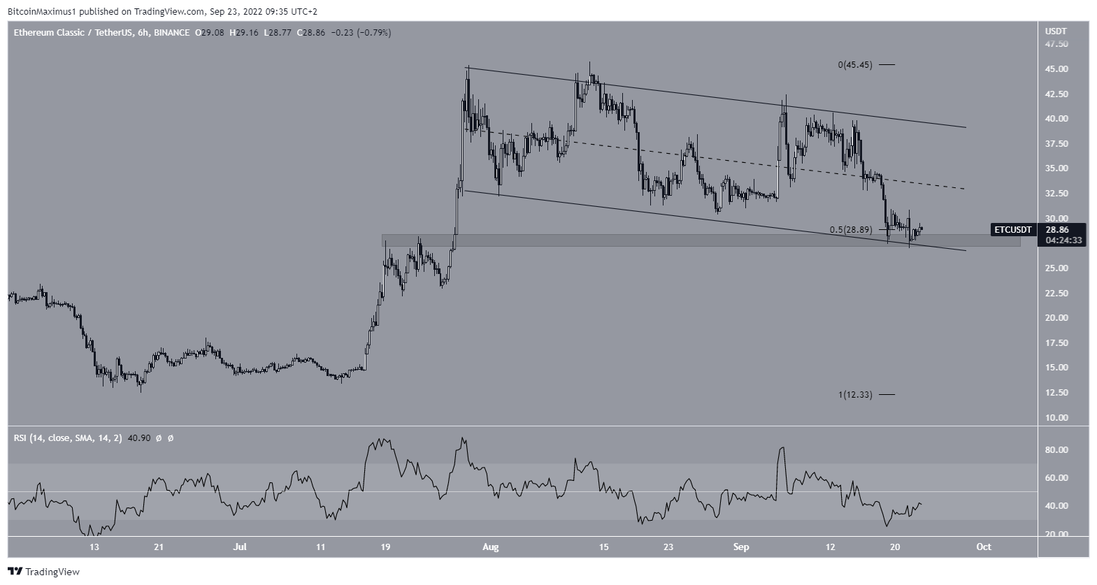 ETC ha estado cayendo dentro de un canal paralelo descendente desde que alcanzó un máximo de 45.36 dólares el 19 de julio. Dichos canales generalmente contienen movimientos correctivos, lo que significa que es probable que se produzca una eventual ruptura.