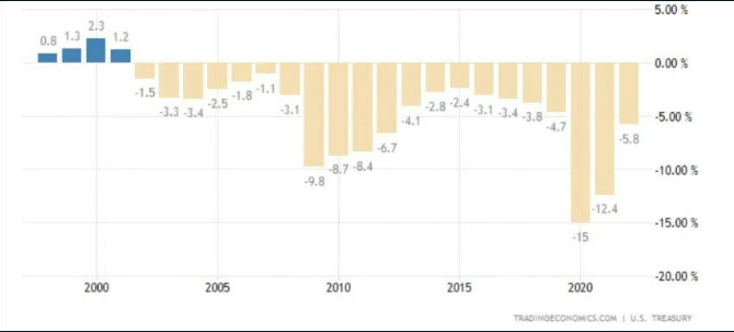 Durante estos períodos, las autoridades estadounidenses gastaron grandes sumas en pagos de estímulo. La creciente tensión en la arena geopolítica en 2022 asestó otro golpe a la economía estadounidense.