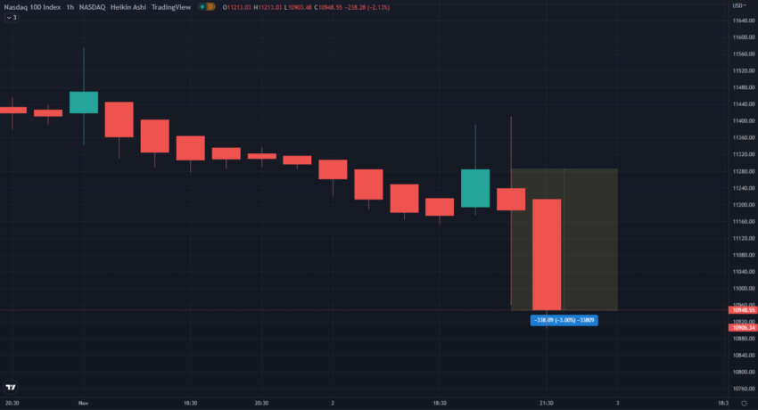 La Reserva Federal de Estados Unidos anunció un aumento de 75 puntos básicos en las tasas de interés el 2 de noviembre de 2022, lo que provocó que los mercados cripto y los mercados bursátiles se desplomaran.