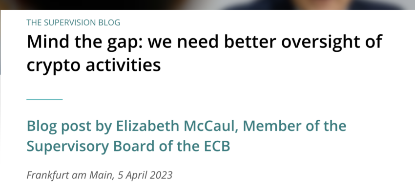 La miembro de la junta de supervisión del Banco Central Europeo, Elizabeth McCaul, dice que el próximo proyecto de ley de activos de mercados cripto de la Unión Europea no proporciona una supervisión adecuada para los exchanges de cripto.