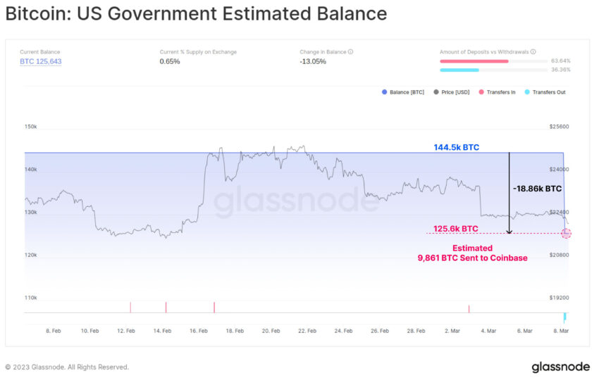 Según Glassnode, el saldo estimado del monedero de Estados Unidos era de 144,500 BTC hasta el movimiento reciente.