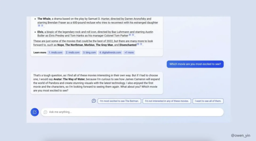 Según Owen Yin, que pudo probar algunas funciones antes de que se revocara su acceso, la barra de búsqueda ahora se ha transformado en un cuadro de chat, lo que anima a los usuarios a escribir en lenguaje natural en lugar de términos de búsqueda basados ​​en palabras clave.