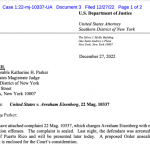 “Se encuentra que la Demanda en la acción antes mencionada, 22 Cr. 10337, actualmente está sellado y el Fiscal de los Estados Unidos Oficina ha solicitado que se abra esa Acusación, es por lo tanto ORDENÓ que la Demanda en la acción antes mencionada sea sin sellar y permanecer sin sellar en espera de una nueva orden del Tribunal”.