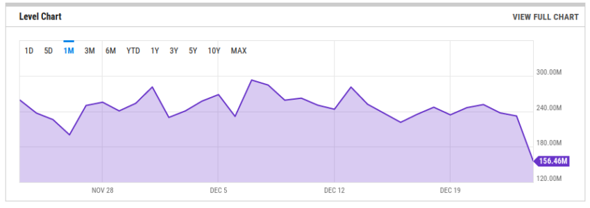 El actual fenómeno meteorológico ha afectado a Bitcoin. De acuerdo a los datos de YCharts, el hashrate de Bitcoin se ha desplomado un 30% y, al momento de la publicación, se ubica en 156.46 EH/s, tras caer desde los casi 240 EH/s registrados hace pocos días.