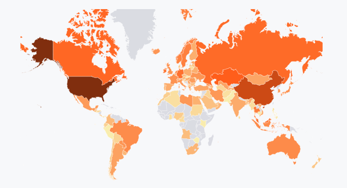 El impacto de la onda invernal en Estados Unidos en el hashrate de Bitcoin se debe a que el país norteamericano representa aproximadamente el 37% del hashrate global de Bitcoin, según el Centro de Finanzas Alternativas de Cambridge.