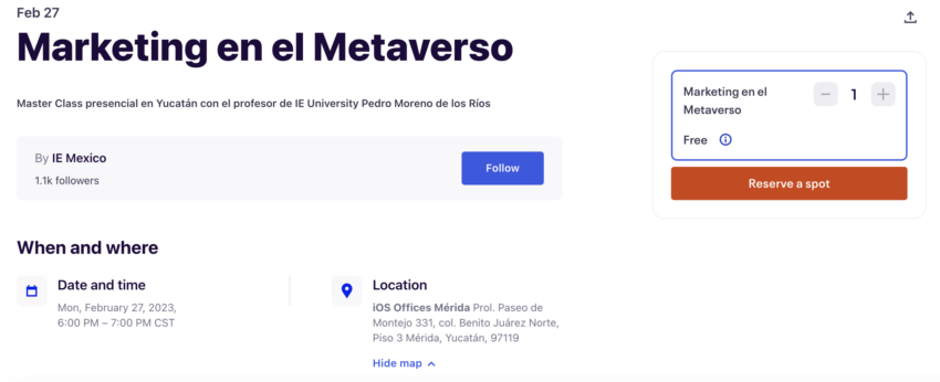 La IE University de España anunció la realización de la Master Class “Marketing en el Metaverso” en Mérida, Yucatán, a realizarse el próximo 27 de febrero y que será impartido por el especialista Pedro Moreno de los Ríos.