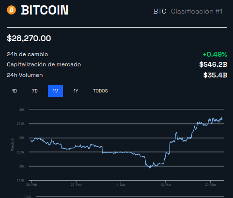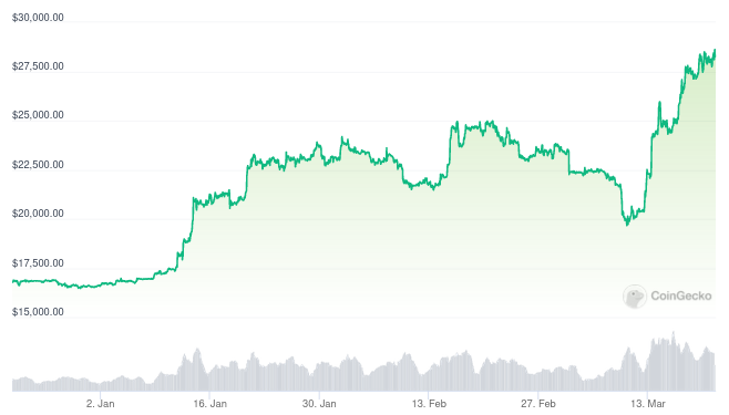 El crecimiento exponencial BTC se ha experimentado a lo largo del mes de marzo, a la luz de la actual crisis bancaria que afecta a Estados Unidos y la Unión Europea.