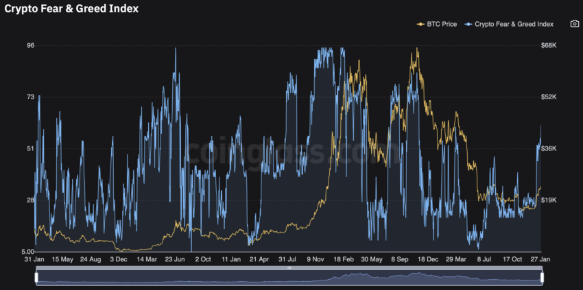 El 30 de enero, el índice llegó a 61, que se considera que está en el territorio de la “codicia” y cerca de su máximo de un año. Este es un marcado contraste con el mes pasado, cuando el índice se situó en 25, lo que indicaba un “miedo extremo” entre los inversores.